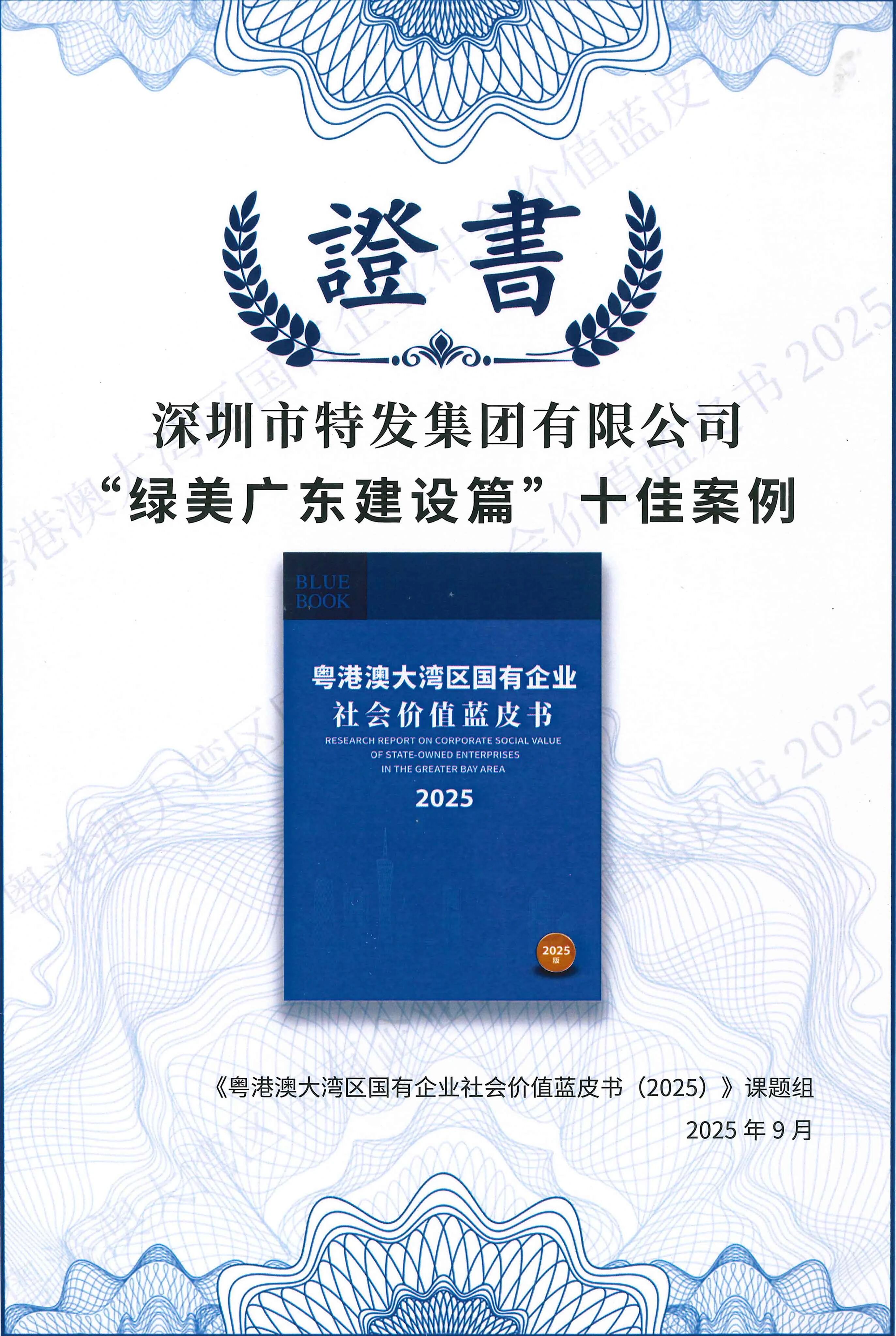 會上,特發(fā)集團(tuán)申報(bào)的《踐行綠色低碳理念 以科技創(chuàng)新驅(qū)動企業(yè)高質(zhì)量可持續(xù)發(fā)展》案例,成功入選由廣東省國資委發(fā)布的《粵港澳大灣區(qū)國有企業(yè)社會價值藍(lán)皮書 (2025)》“綠美廣東建設(shè)篇”十佳案例。