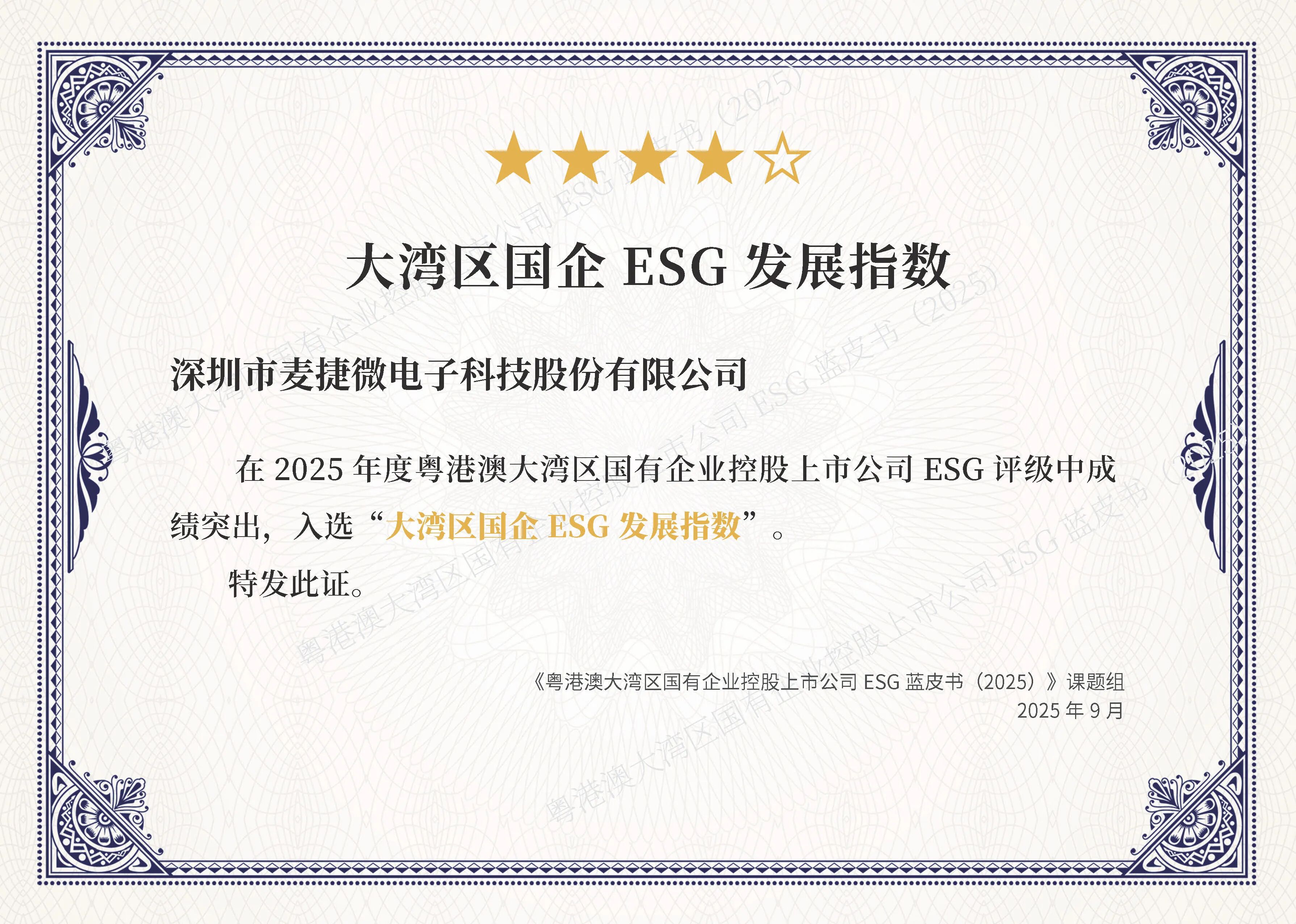 此外,在本次論壇發(fā)布的多項(xiàng)權(quán)威指數(shù)中,特發(fā)集團(tuán)旗下麥捷科技憑借在ESG領(lǐng)域的優(yōu)秀表現(xiàn),首次入選“大灣區(qū)國企ESG發(fā)展指數(shù)”榜單。本次入選,不僅是對麥捷科技ESG治理、社會價值創(chuàng)造、風(fēng)險(xiǎn)管理等工作的高度認(rèn)可,更是對麥捷科技踐行可持續(xù)發(fā)展理念的充分肯定。