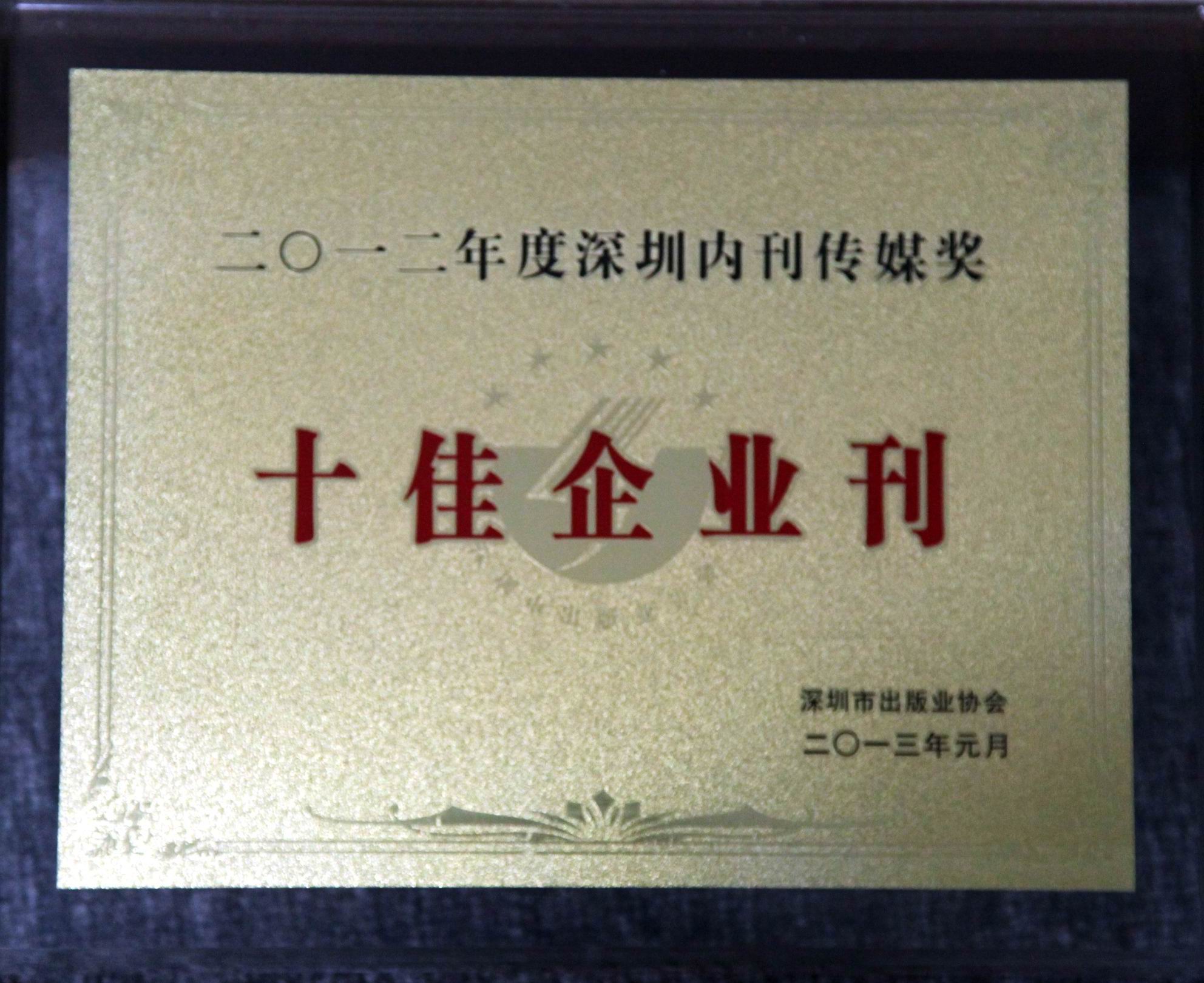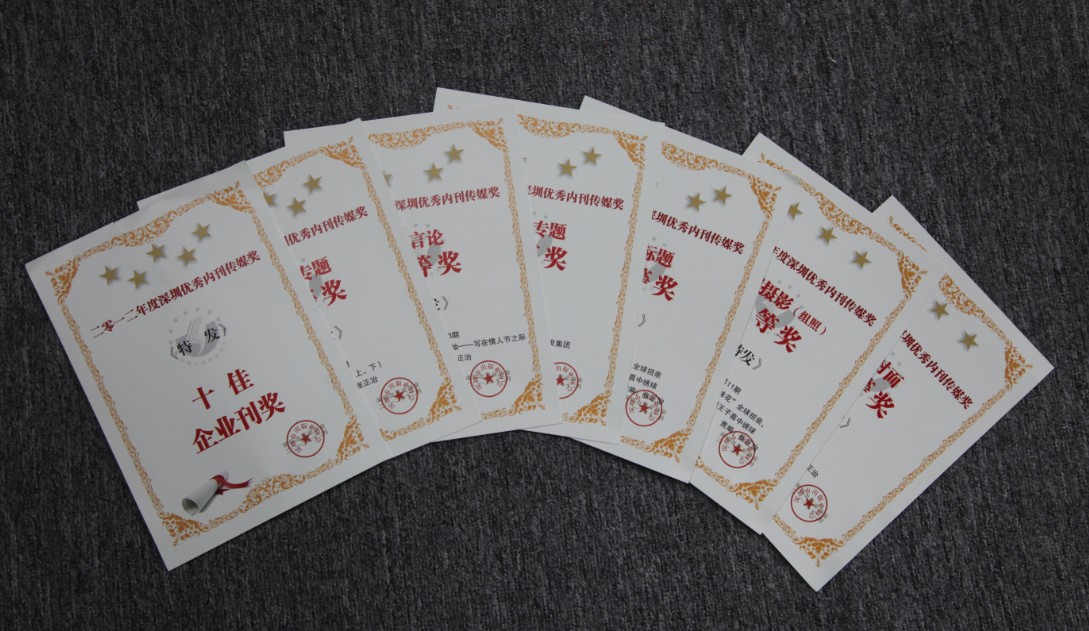 近日,在深圳內(nèi)刊界2012年度總結(jié)大會暨內(nèi)刊傳媒獎頒獎大會上,《特發(fā)》月刊被市出版業(yè)協(xié)會授予“深圳優(yōu)秀內(nèi)刊傳媒獎”最高榮譽——“深圳市十佳企業(yè)刊”稱號,這是《特發(fā)》月刊連續(xù)四年獲此殊榮;集團(tuán)系統(tǒng)企業(yè)特發(fā)信息的季刊《信息窗》、特發(fā)物業(yè)的企業(yè)報《特發(fā)物業(yè)》分別被評為優(yōu)秀企業(yè)刊、報。同時,在“經(jīng)濟(jì)論壇”、“好言論”、“好標(biāo)題”、“好封面”、“新聞攝影”(組照)等單項中獲得一、二、三等獎等七個獎項的好成績。